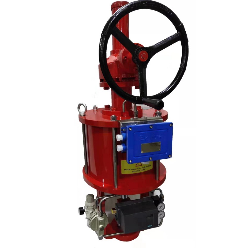 气动阀门执行器的控制方式利用压缩空气推动执行器内多组组合气动活塞运动,传力给横梁和内曲线轨道的特性,带动空芯主轴作旋转运动,压缩空气气盘输至各缸,改变进出气位置以改变主轴旋转方向,根据负载(阀门)所需旋转扭矩的要求,可调整气缸组合数目,带动负载(阀门)工作。 两位五通电磁阀通常与双作用气动执行机构配套使用,两位是两个位置可控:开-关,五通是有五个通道通气,其中1个与气源连接,两个与双作用气缸的外部气室的进出气口连接,两个与内部气室的进出气口接连,具体的工作原理可参照双作用气动执行机构工作原理。