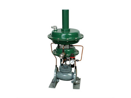 该阀采用大膜片执行机构输出力大稳定,对压力流量微小变化极其敏感,控制精度很高,阀芯采用单座流开(高进低出)设计,在阀盖处(和阀体连接处)安装有平衡膜片(起到阀前压力平衡,消除不平衡力)阀后压力经取压管进入薄膜执行机构,同薄膜执行机构调节弹簧相比较,压力达不到设定值(调节压缩执行机构弹簧)阀后压力则变大,反之则变小。