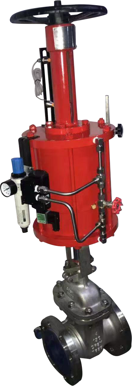 气动闸阀,借助压缩空气驱动的阀门,闸阀关闭时,密封面可以只依靠介质压力来密封,即依靠介质压力将闸板的密封面压向另一侧的阀座来保证密封面的密封,这就是自密封。大部分闸阀是采用强制密封的,即阀门关闭时,要依靠外力强行将闸板压向阀座,以保证密封面的密封性。